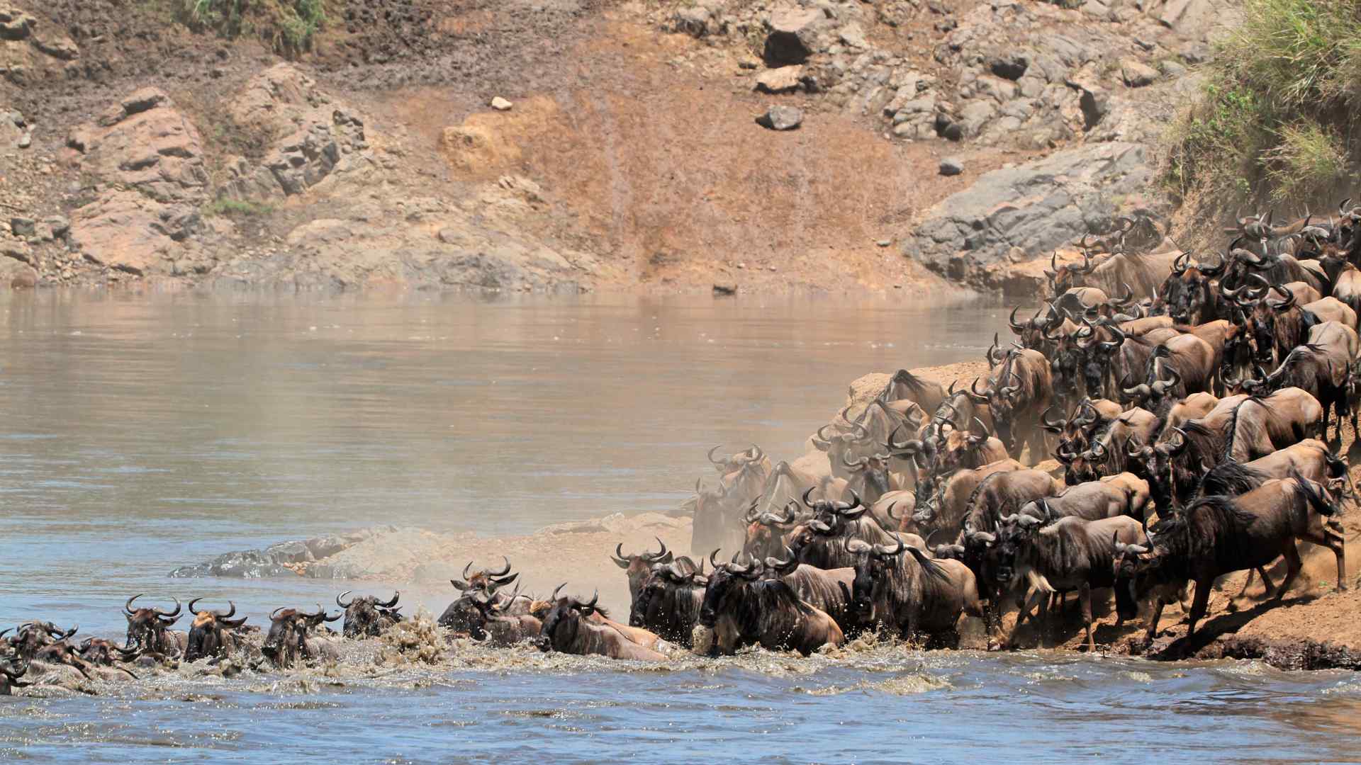The calving season starts in the Southern Serengeti, where thousands of wildebeest give birth in the early months of the year – As the plains dry up, the herds start moving towards the Grumeti River in Tanzania to take on their first major river crossing – The Grumeti and Mara River crossings provide the spectacle that the Great Migration is known for with crocodile-infested waters – The herds enjoy the Mara, grazing on the lush grass until the rains begin in the south again